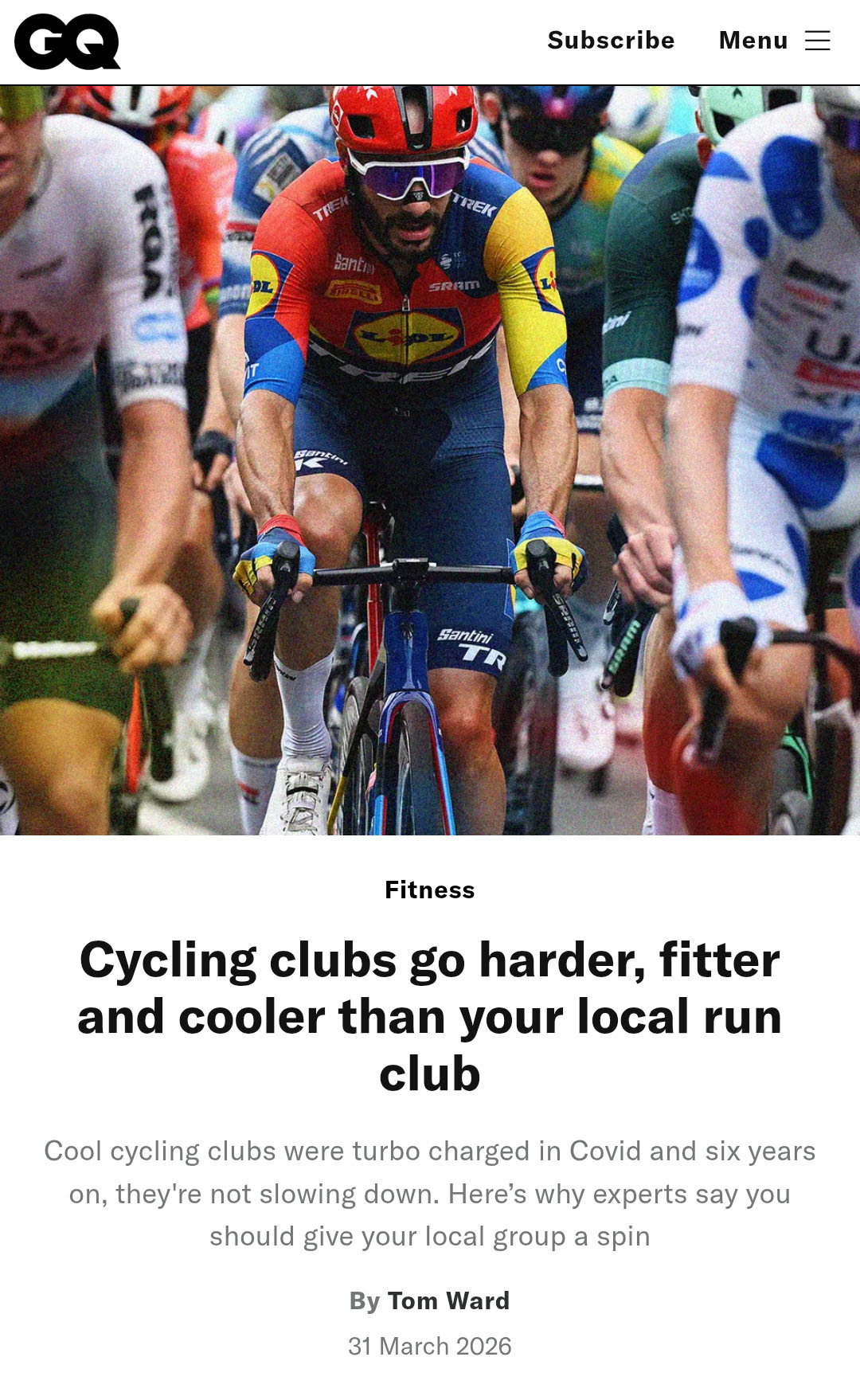Well, not quite the papers, not Forge London CC has been featured in an article in GQ magazine discussing the benefits of joining a cycling club. From coffee and cakes to gear and routes, hear what our Chair, Rach G, has to say about riding in a group.